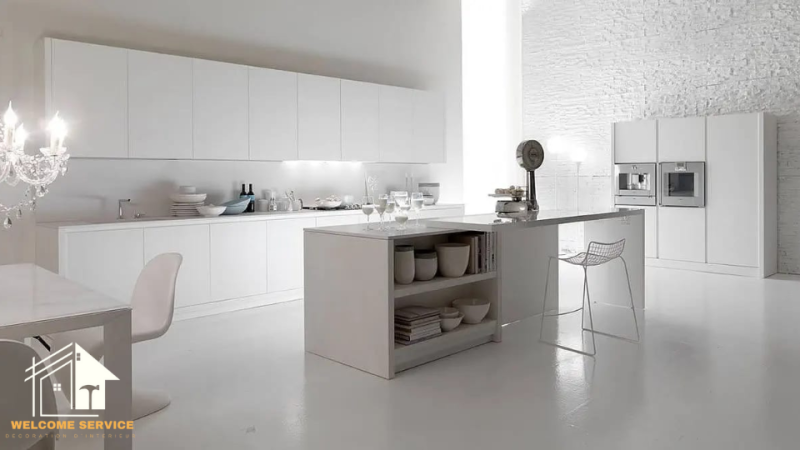 De la conception 3D à la fabrication, Welcome Service réalise des cuisines modernes et fonctionnelles, adaptées à votre espace et à votre style. Matériaux disponibles : MDF laqué, stratifié, bois, plans en quartz/compact.